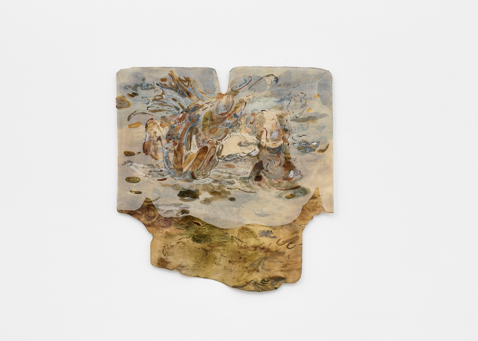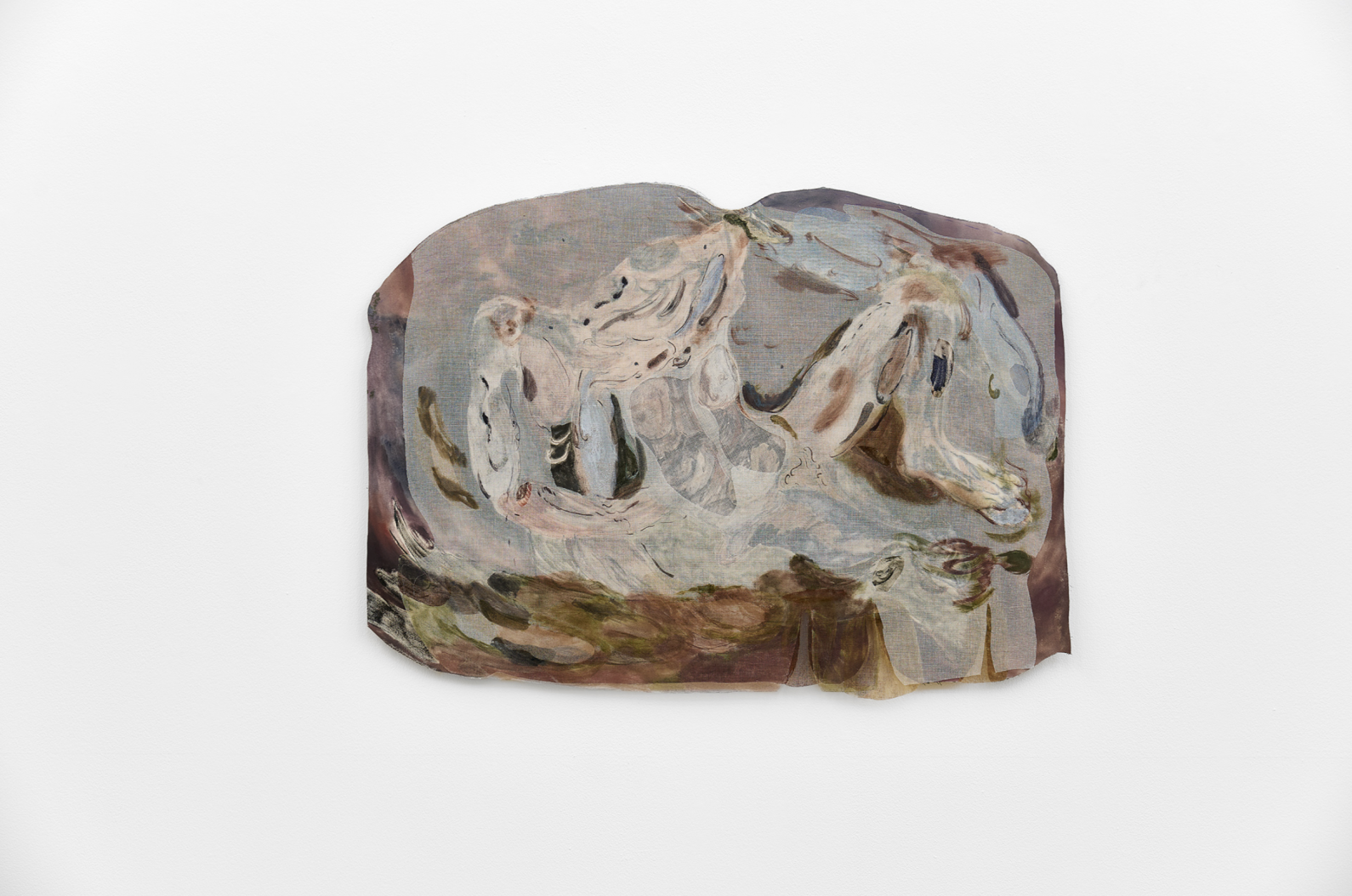 Acrylic, ink, watercolour, scrim, raw canvas, thread