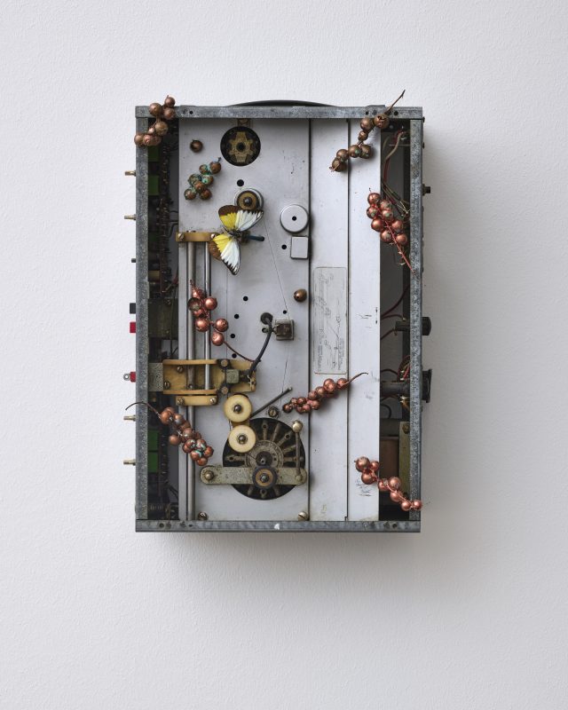 Steel, glass, hacked egg incubator, watercolour on nettle cloth, agar-agar, various fungi and bacteria
